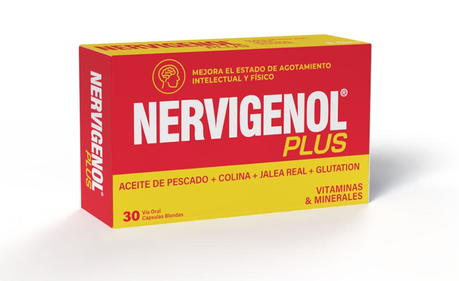 Nervigenol Plus aporta energía y vitalidad gracias a la Colina y la Jalea Real, además de cuidar la salud del corazón, la mente y la memoria gracias al Omega-3 del Aceite de Pescado.